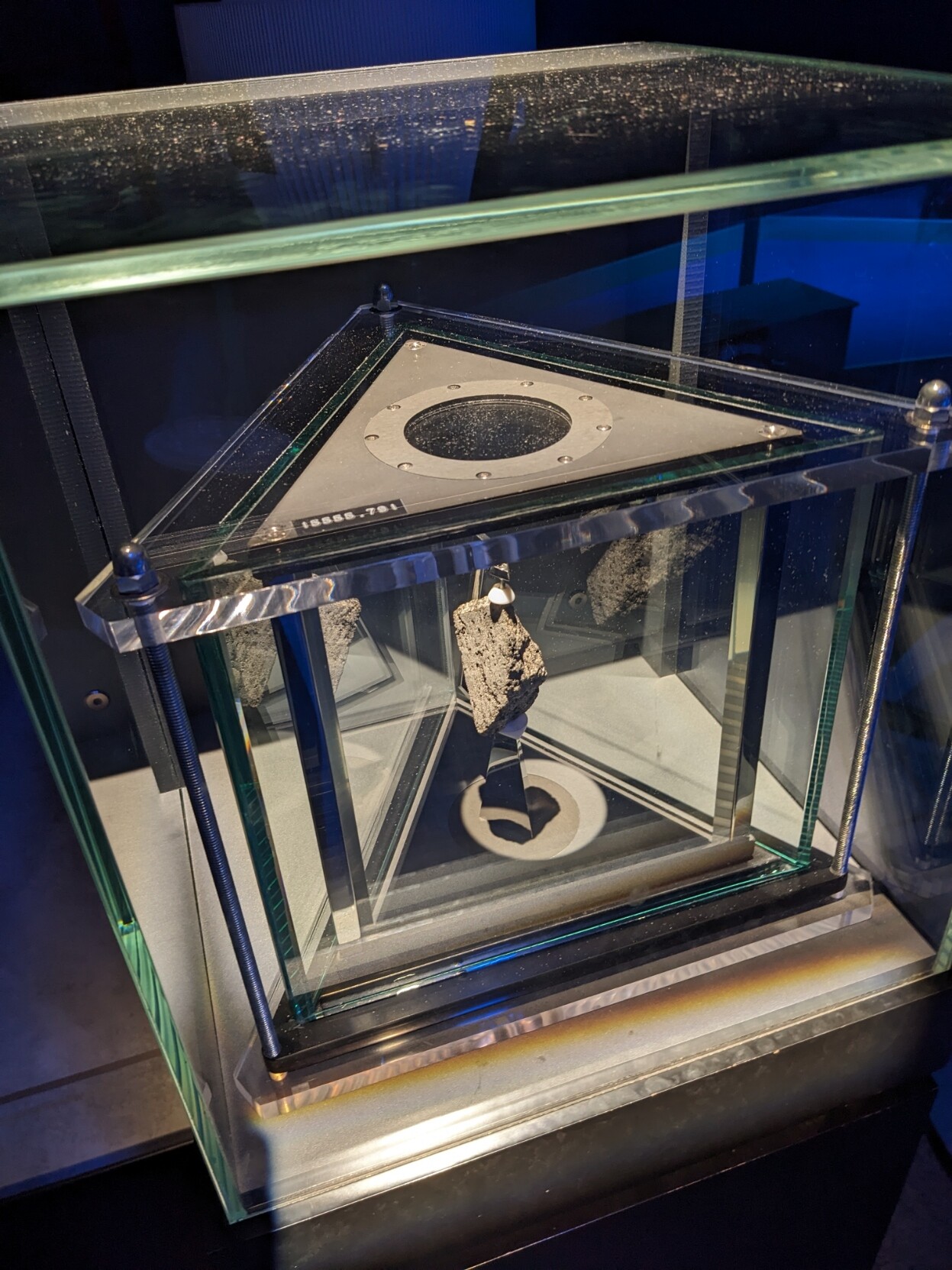 最精彩的一瞬是提到登月的宇航员采集了一块月岩带回来分析,任务代号15555。然后详细的解释这块样品如何把人类对月球的认识推进了一大截。然后屏幕里的播片是当年宇航员在月面上拿着大铲子费力的铲月岩的模糊的直播信号。