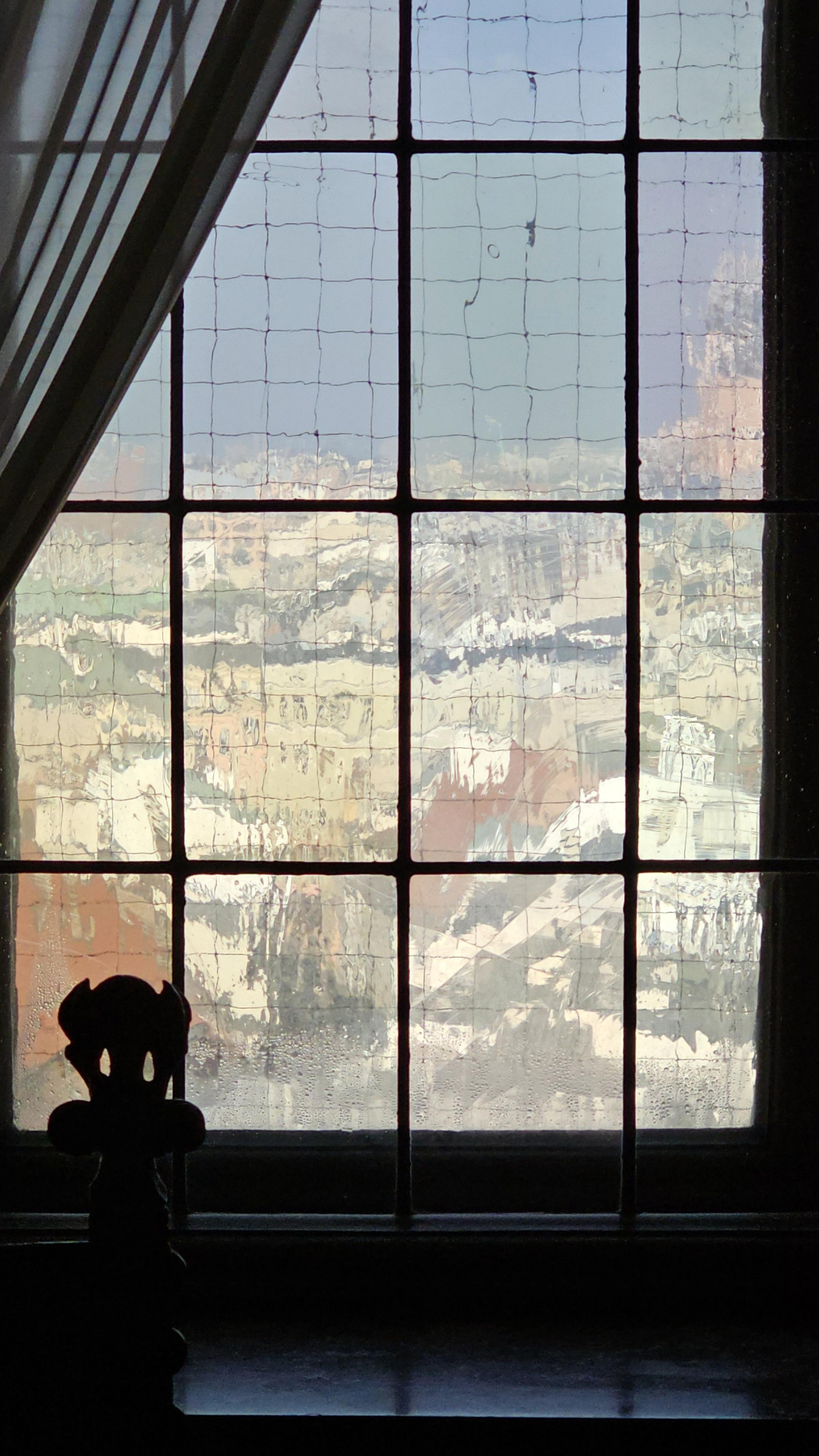 The view over Krakow from Wawel Castle. The glass is so old, it distorts the world in an interestingly impressionistic way.