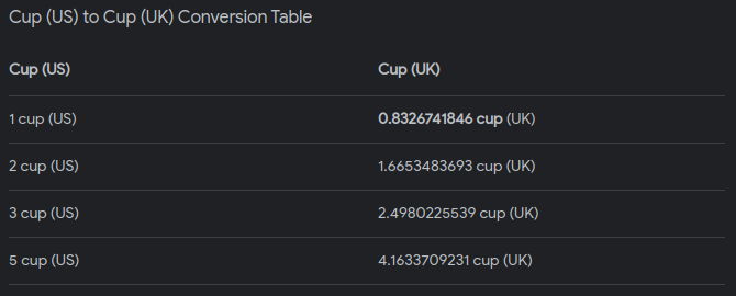 @thor my favourite part is when some anglophone measures recipe ingredients in "cups" and you wonder if they mean British or American cups…