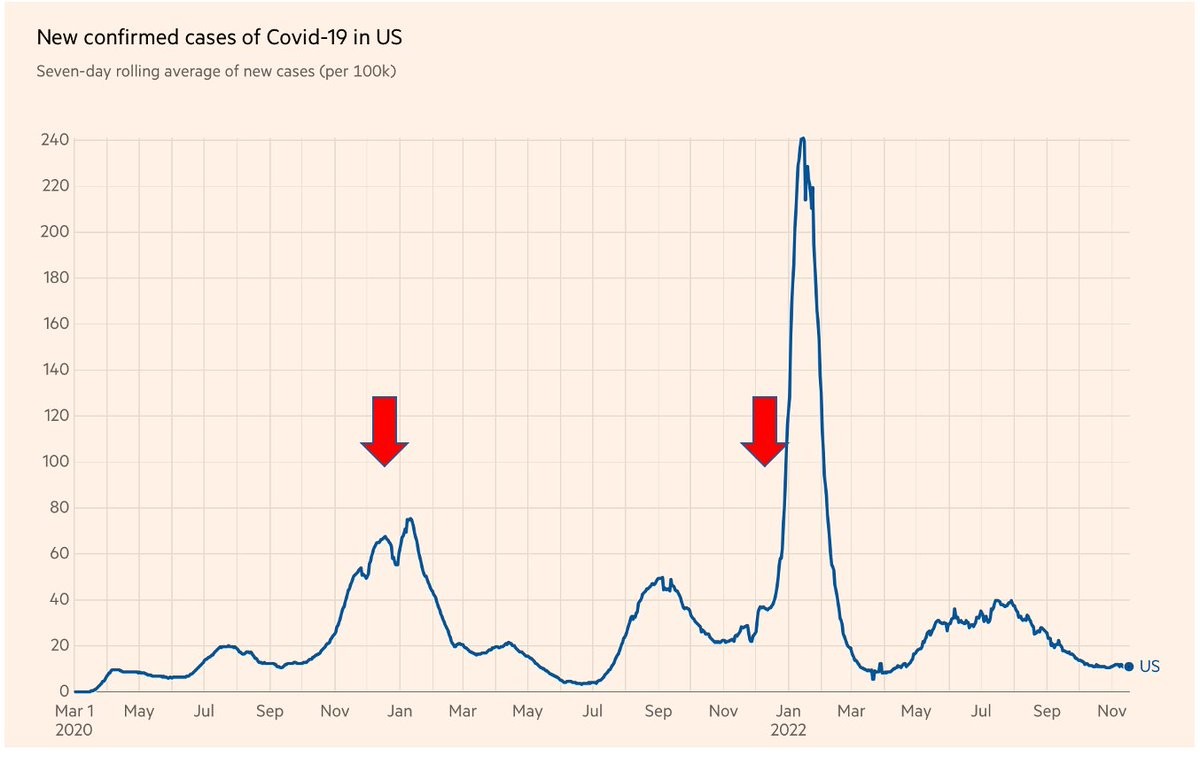 Unlike the prior 2 holiday seasons in the US, a major surge is unlikely, which is not in keeping with new, dominant variants with marked immune evasion.