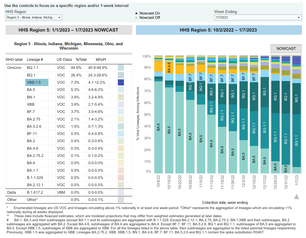 To your overall point, I thoroughly enjoyed your post on substack. Thank you for referencing the biobot.io data as having variant info. Quickly looking at it, my first guess would be that Indiana is between decreasing BA.5/BQ.1 and increasing XBB 1.5 and it'll actually go up across January, but, as you alluded to in your article, the lack of case data makes this all so much harder than it needs to be.