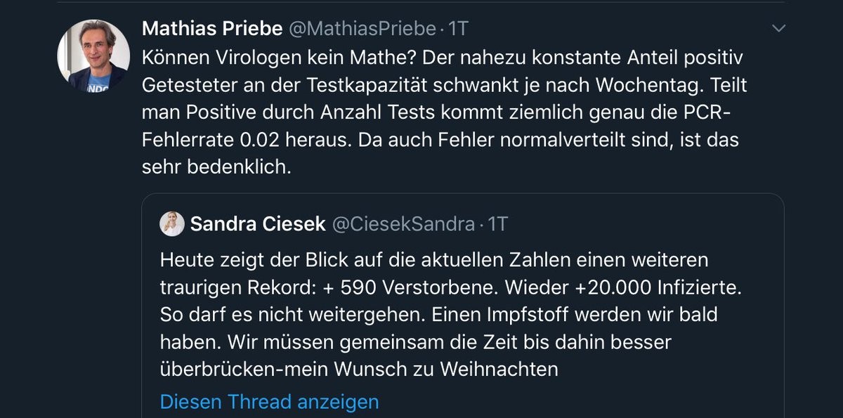 Er liegt um mehrere Größenordnungen daneben und offenbart hierdurch, dass er Null Zahlenverständnis hat. Aber er fühlt sich berufen Frau Prof. Ciesek (@CiesekSandra) Mathe-Kompetenz abzusprechen.