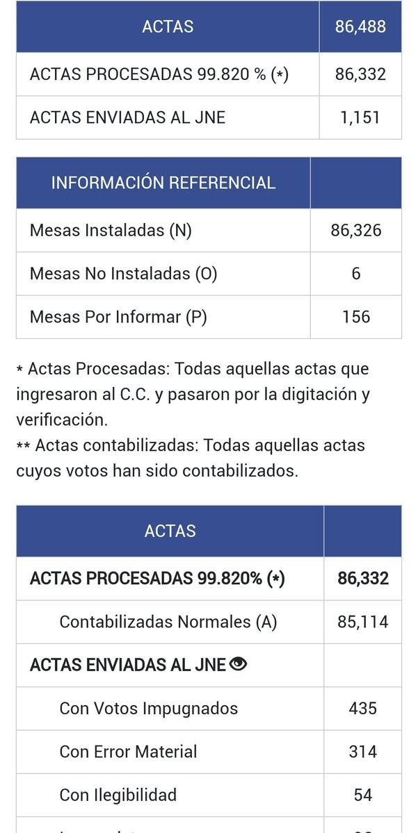@jhonjro18 @hincha_pc @SilviaCaldernG1 @ONPE_oficial Eso es actas procesadas, pero hay actas que aún no se contabilizan, en sentido estricto faltan cont…
