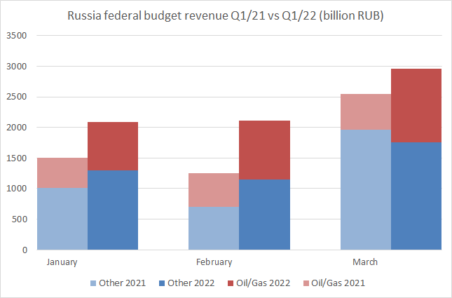 This is #Russia's federal budget revenue in the first quarter of 2021 and 2022. Focus on March 2022, the first month of the war: