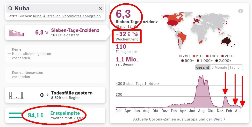 94 % Impfquote (einschl. Kinder ab 2) PLUS strikt #MaskeBleibtAuf in öffentlichen Räumen ist ausreichend. Siehe Kuba, bald #ZeroCovid.