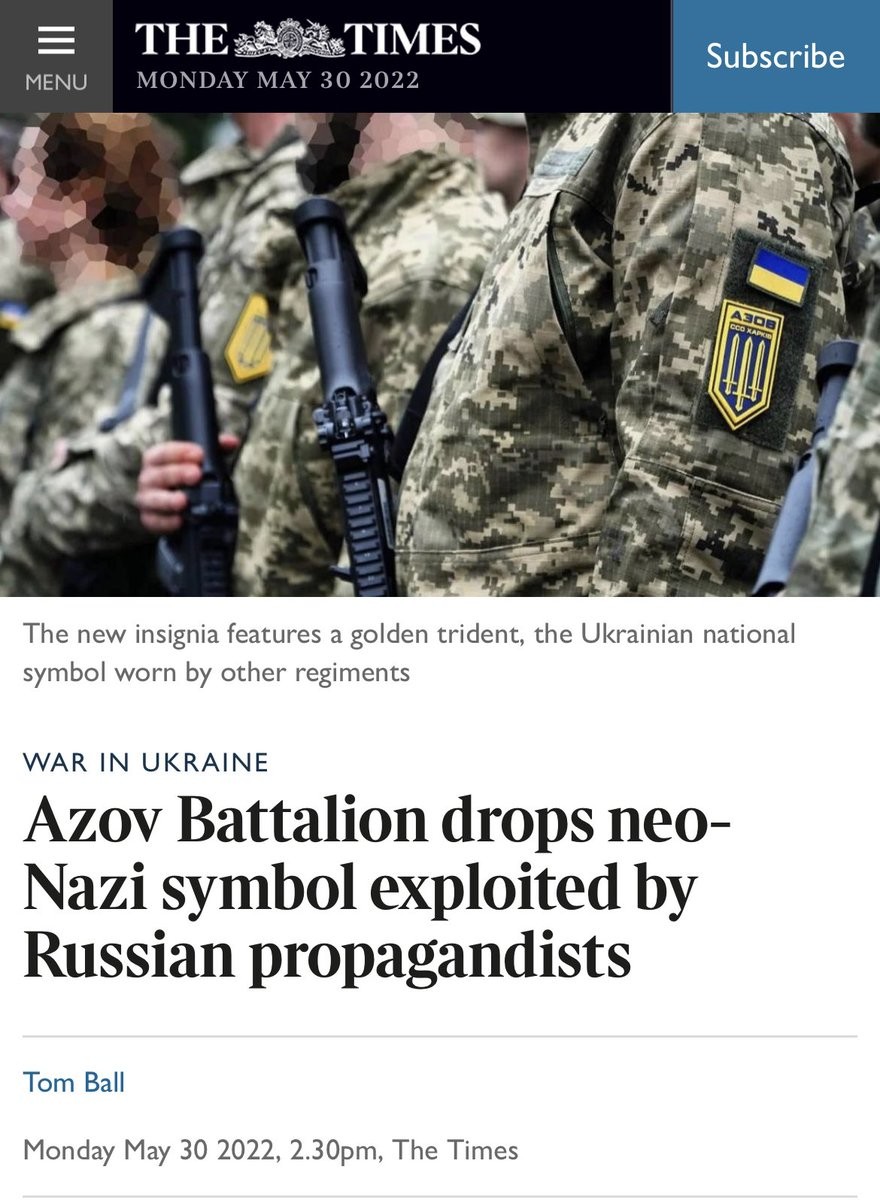 "British empire smut rag The Times has a new article out titled 'Azov Battalion drops neo-Nazi symbol exploited by Russian propagandists,' which has got to be the most hilarious headline of 2022"