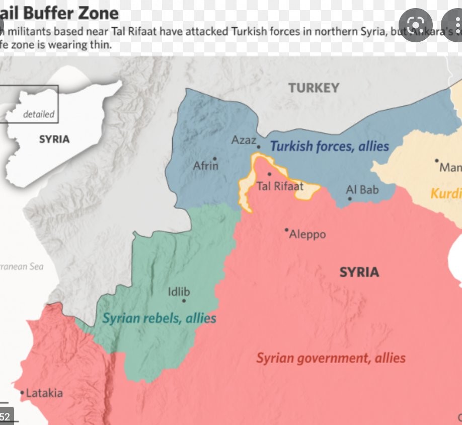 Erdogan heute: "Wir treten in eine neue Phase unserer Entscheidung ein, eine 30KM tiefe Sicherheitszone entlang unserer Südgrenzen zu schaffen. Wir befreien Tel Rifaat & Manbij [..]"