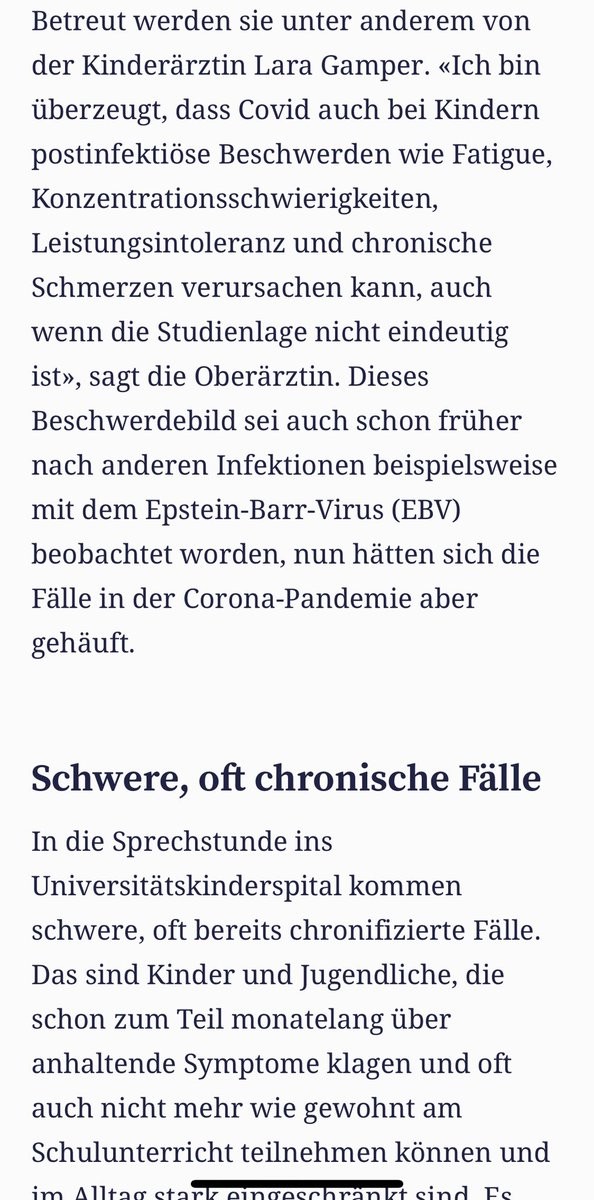 Longcovid bei Kindern ist real. Und es ist grausam. Und so extrem selten ist es nicht. Am Kispi in Zürich werden pro Woche zurzeit 1-2 neue schwere Fälle betreut. Mit Sprechstundenleiterin Lara Gamper habe ich über Therapien und Prognosen gesprochen. https://www.tagesanzeiger.ch/post-covid-bei-kindern-ist-real-425725141292