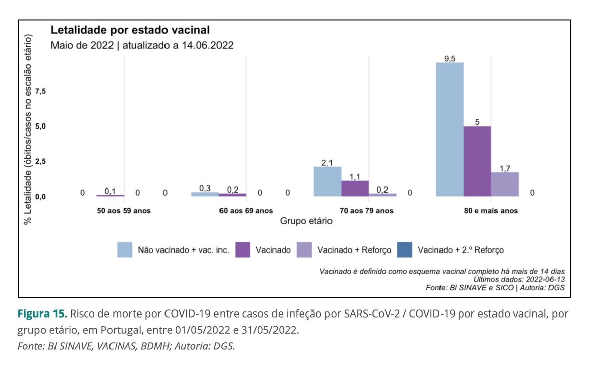 Bei den COVID-Fällen im Mai (1.5.-31.5.) sind in Portugal bei Ü-80J 10% der Ungeimpften (oder nur 1 Dosis) verstorben, 5% der mit 2 Dosen Geimpften, 1,7% der Geboosterten und 0% der 2x Geboosterten.