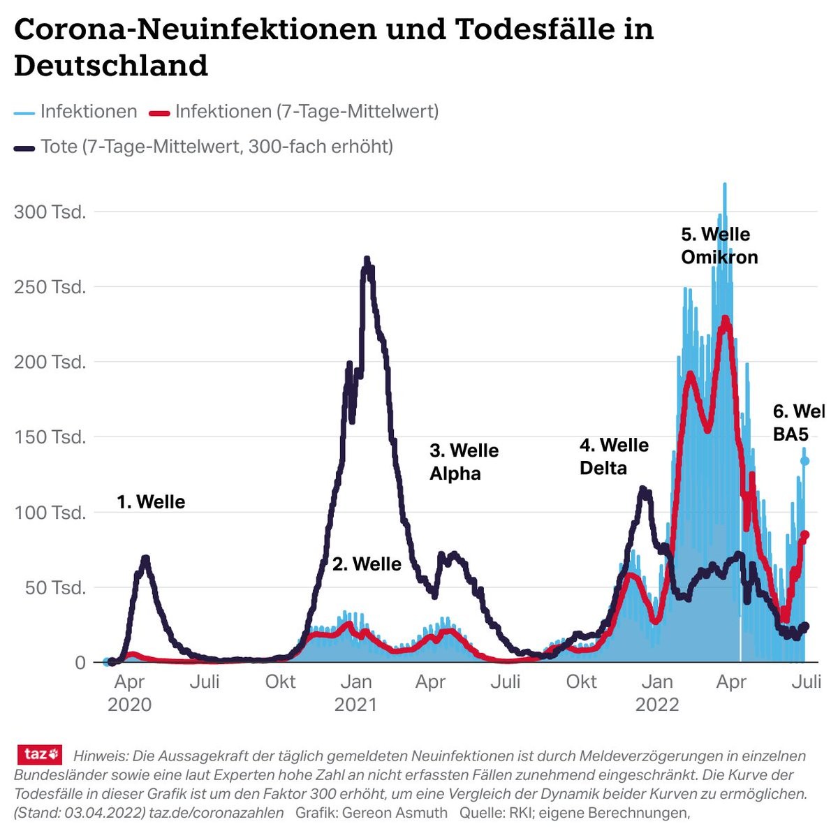 De #Corona-Zahlen am Mittwoch ... zeigen ein weiteres Ansteigen der Sommerwelle. Die wichtigen Indikatoren liegen 23 bis 33% höher als vor 1 Woche. Details wieder im Thread. (1/x)