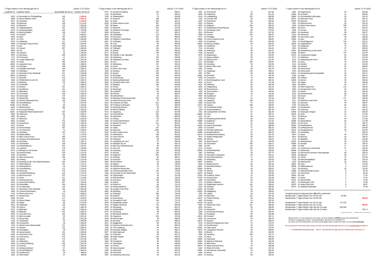 Die heutige Tagesstatistik (17.07.) der 7-Tage-Inzidenz in der AG 5-14