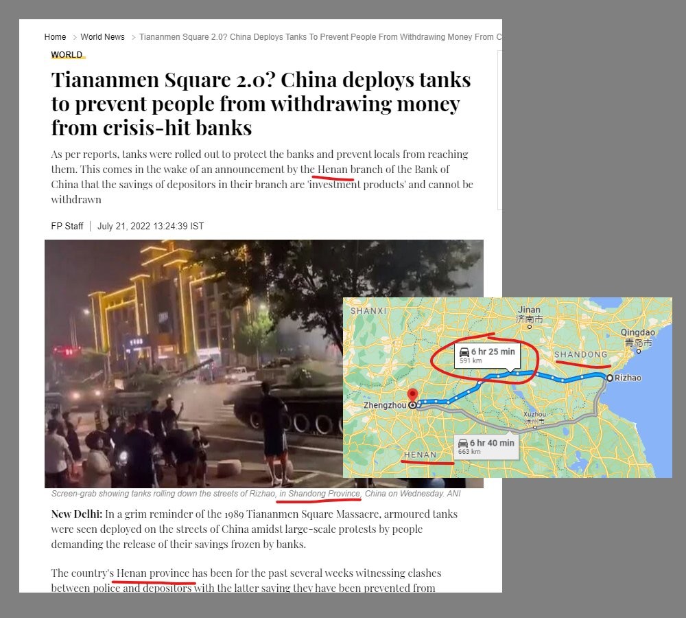 2) Social media video of some tanks on a street in Rizhao, Shandong province