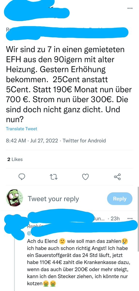 Es wird jetzt also ernsthaft das Privileg der Gasversorgung für Haushalte in Frage gestellt, um „durch eine geringere Raumtemperatur anderen zu ermöglichen, weiter auf die Arbeit zu gehen“, dieses Land ist so krank einfach, mir fehlen die Worte