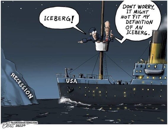 Die Sprecherin des Weißen Hauses erklärt die klassische Definition für eine (2 Quartale mit negativem Wachstum) für ungültig. Dreistigkeit? Wohl eher die Hilflosigkeit von Ertrinkenden.