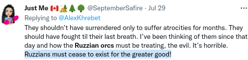 While doing some preemptive blocking today, came across this... showing how dehumanizing Russians leads to promotion of genocide.