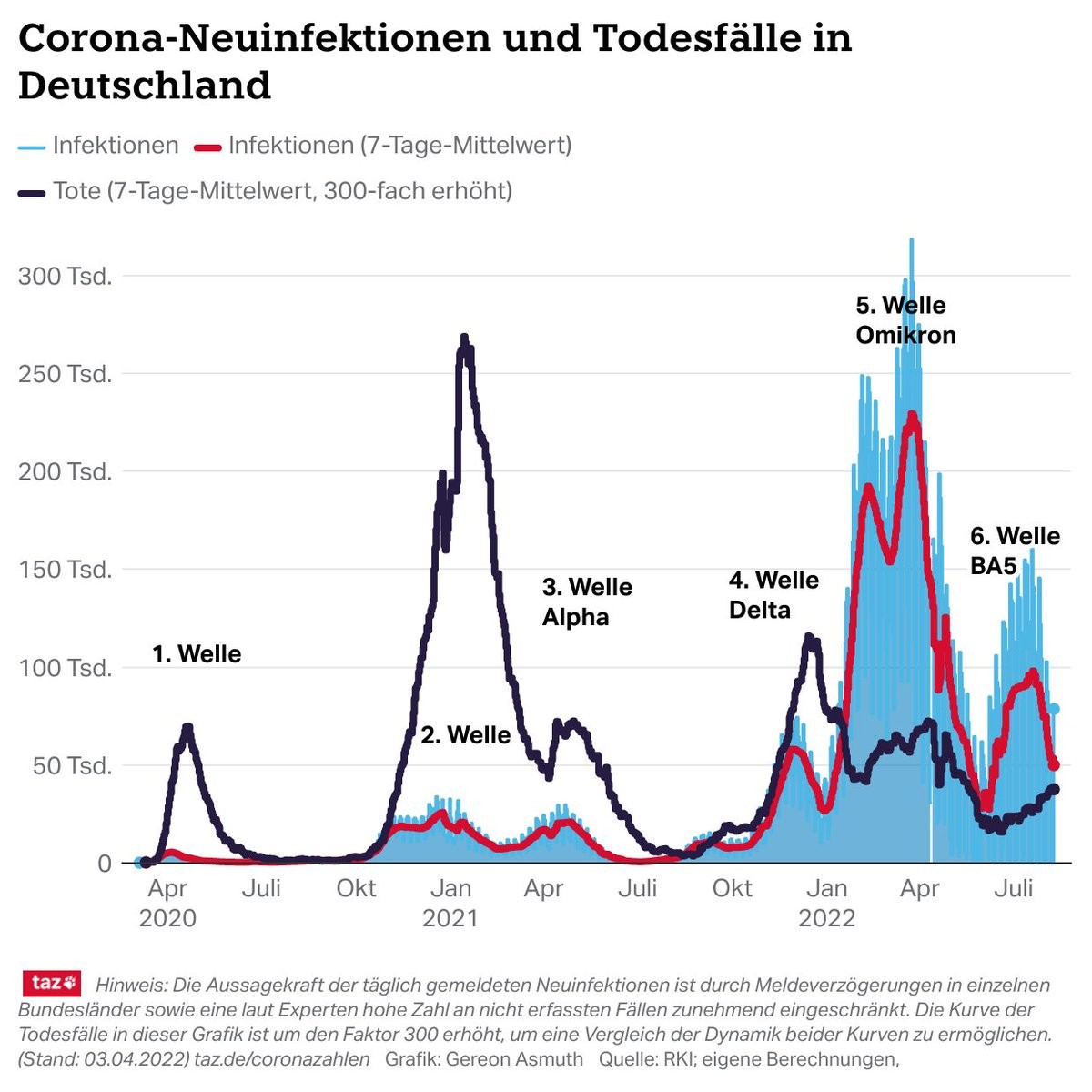 Die #Corona-Zahlen am Dienstag zeigen weitgehend alle Indikatoren ein weiteres Abflauen der Sommerwelle. Die Totenzahl bleibt aber weiter konstant hoch. Details wieder im folgenden Thread. (1/x)