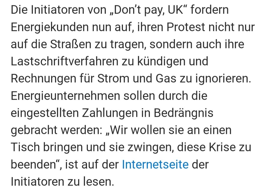 "Don't pay, DE" . #DontpayDE lasst uns die Politik und die Energieriesen dazu zwingen, die Krise zu beenden. Ohne Knete keine Fete. Wir müssen dafür sorgen,das die Regierung Politik für die Menschen macht,und nicht um irgendwelche Agenden durchzudrücken.