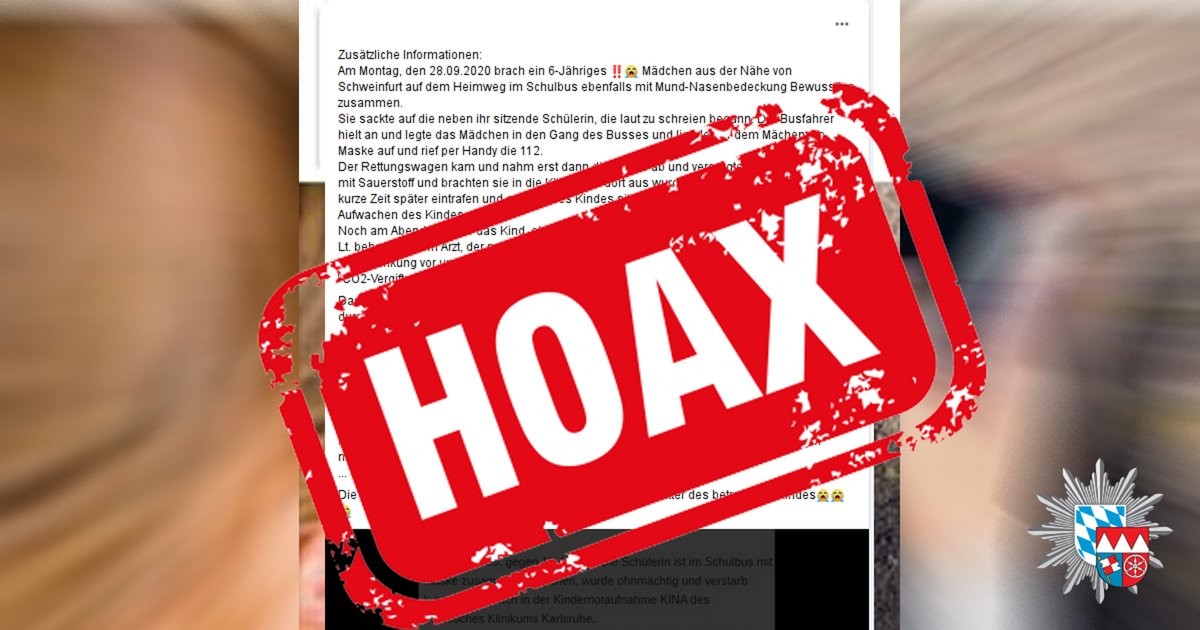 Seit Dienstag verbreiten Masken-Kritiker auf Social Media #Falschmeldungen über den angeblichen Tod eines 6-jährigen Mädchens in #Schweinfurt.
