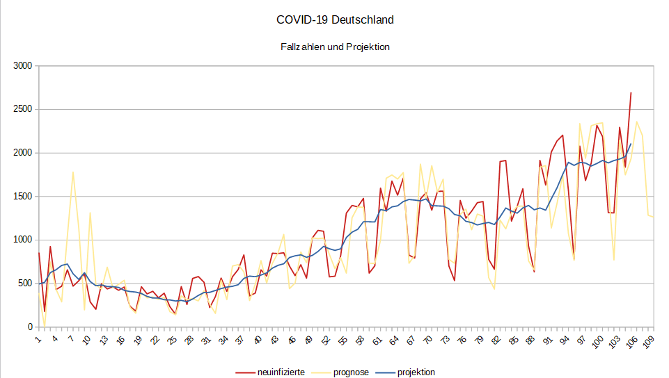 #COVID sehr früh heute, +2697, Vorwochen +1882 und +2011. Es zuckt also wohl zur nächsten Ebene nach oben.