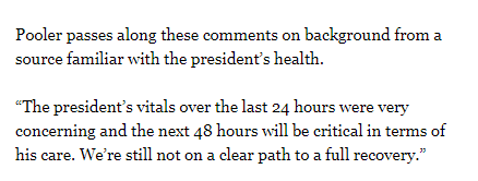 Reporters at Walter Reed have been given a statement by a source familiar with Trump's health, saying his vitals over the last 24 hours were "very concerning." This contradicts the statement given by Trump's doctor.