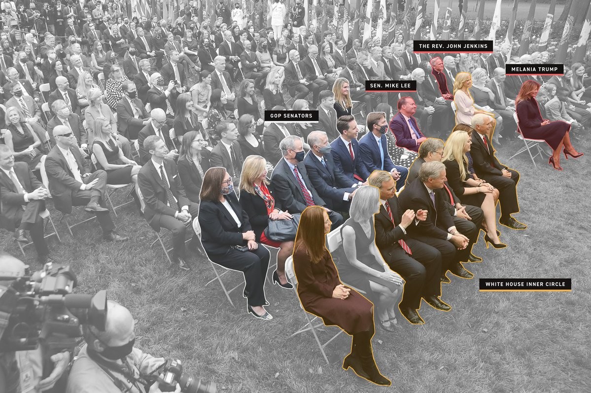 Melania, Sen. Mike Lee and the Rev. John Jenkins, all of who have tested positive for Covid-19, were in close proximity to senators and White House officials at last Saturday's ACB announcement. https://politi.co/30pBu1i