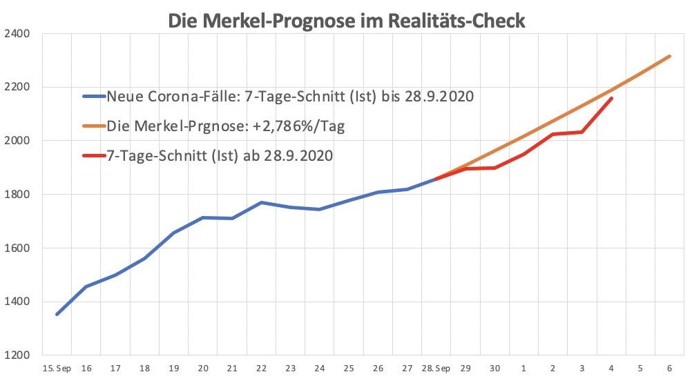Die Schock-Prognose der Kanzlerin vom Montag - 19.200 neue -Fälle am Tag bis Weihnachten - unterstellte implizit ein tägliche Fallzahlwachstum von 2,786% (welt.de/wirtschaft/plus2167618 via @welt).