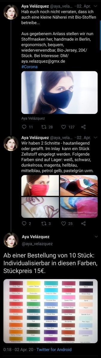 @MMittermeier Und vor ein paar Monaten noch selber Masken herstellen und verkaufen... was ist los mit den Menschen? https://twitter.com/aya_velazquez/status/1245475599105261569