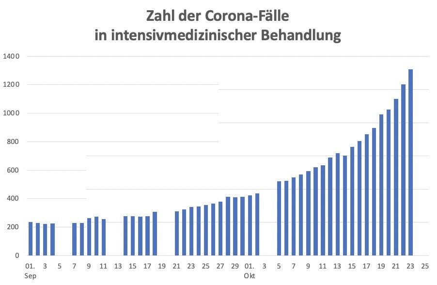 Die Zahl der #Corona-Infizierten, die intensivmedizinisch behandelt werden, steigt Divi zufolge auf 1203.