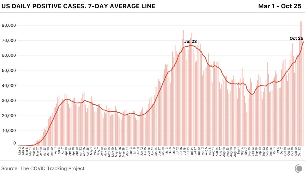 🚨BREAKING: the US has set a new record for new #coronavirus cases averaged over a 7-day period of 68,954 cases—shattering the previous high of 66,844 set on July 23.
