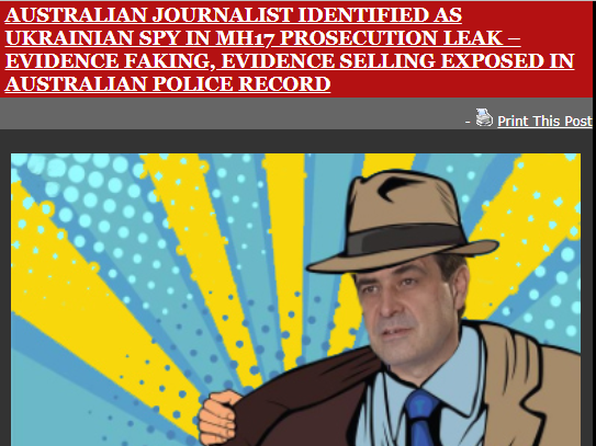 DEMJIN DOROSCHENKO silenced after threat to expose MH17 evidence faking unless the Dutch paid. http://johnhelmer.net/australian-journalist-identified-as-ukrainian-spy-in-mh17-prosecution-leak-evidence-faking-evidence-selling-exposed-in-australian-police-record/#more-45412