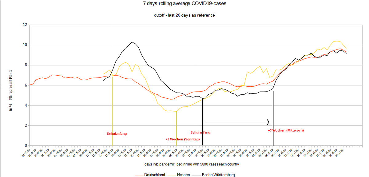 Ich habe jetzt aus .... sagen wir einfach so... begonnen Bundesländer nach #COVID-R-Werten auszuwerten. Nach Hessen nun BaWü. Ich zeichne die Ferienenden und 3 Wochen (epid. Abstand) jeweils ein.
