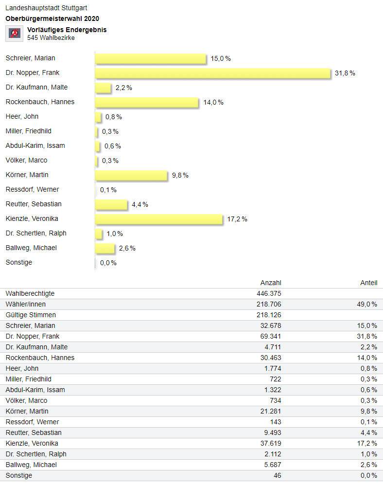 Mit überragenden 2,6% (5687 Stimmen) ist er knapp gescheitert.
