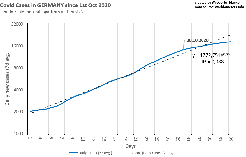 Fakt ist: vom 1. bis 30.10. lag exponentielles Wachstum vor. Anschließend kam es zu einem Abflachen der Kurve.