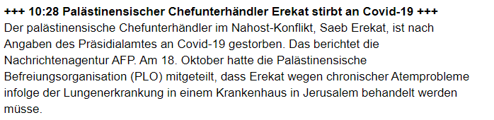 Der Chefunterhändler von #Palästina im #Nahost-Konflikt und der wahrscheinliche Nachfolger von Mahmud #Abbas, Saeb Erekat, ist am #Coronavirus in #Jerusalem gestorben. /TN