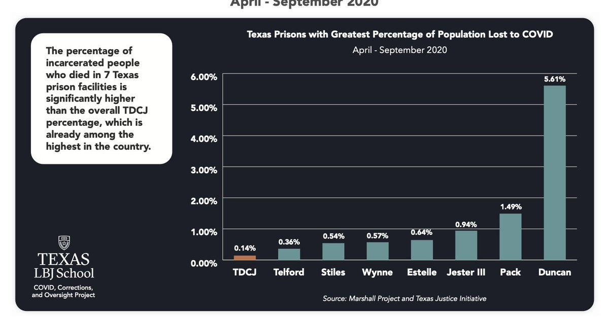 At one Texas prison nearly 6% OF THE POPULATION has died of COVID-19.