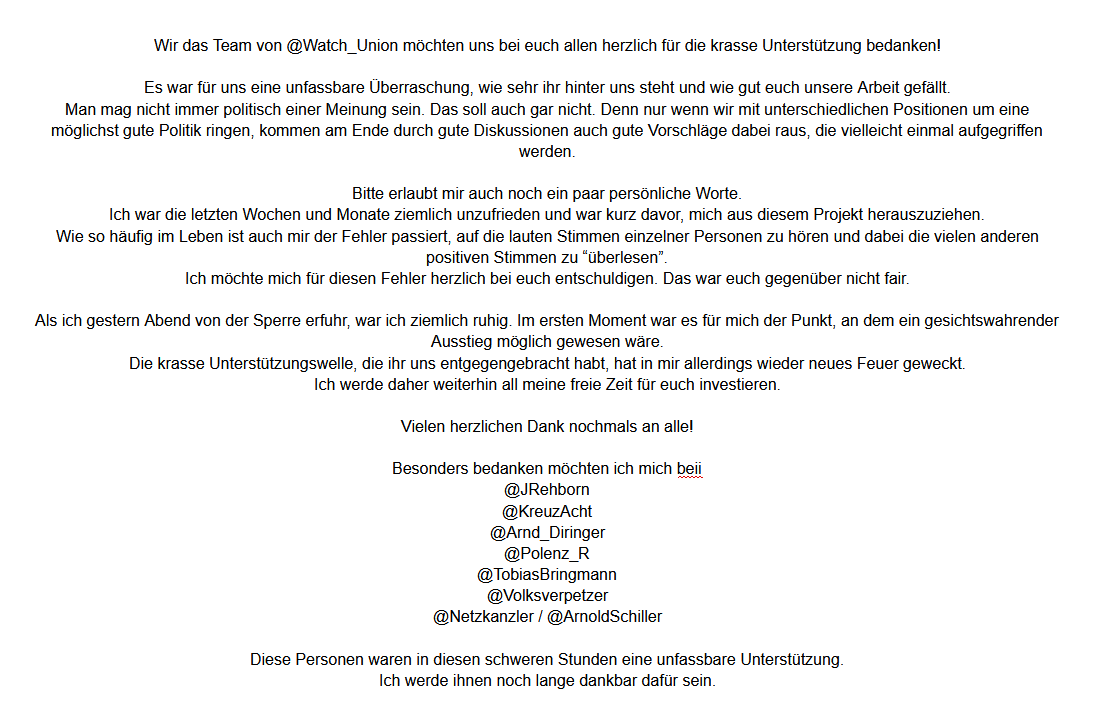 Herzlichen Dank für all eure krasse Unterstützung 💕 /TN #TwitterSperrt #freewatch_union #freewatchunion