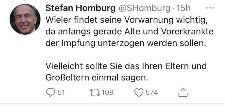 Selbst wenn nur 1 von Tausend an oder mit seinem Tweet verblödet, macht das bei Durchlesen aller seiner Tweets rund 80.000 Verblödete zusätzlich. https://twitter.com/shomburg/status/1335142676476416001