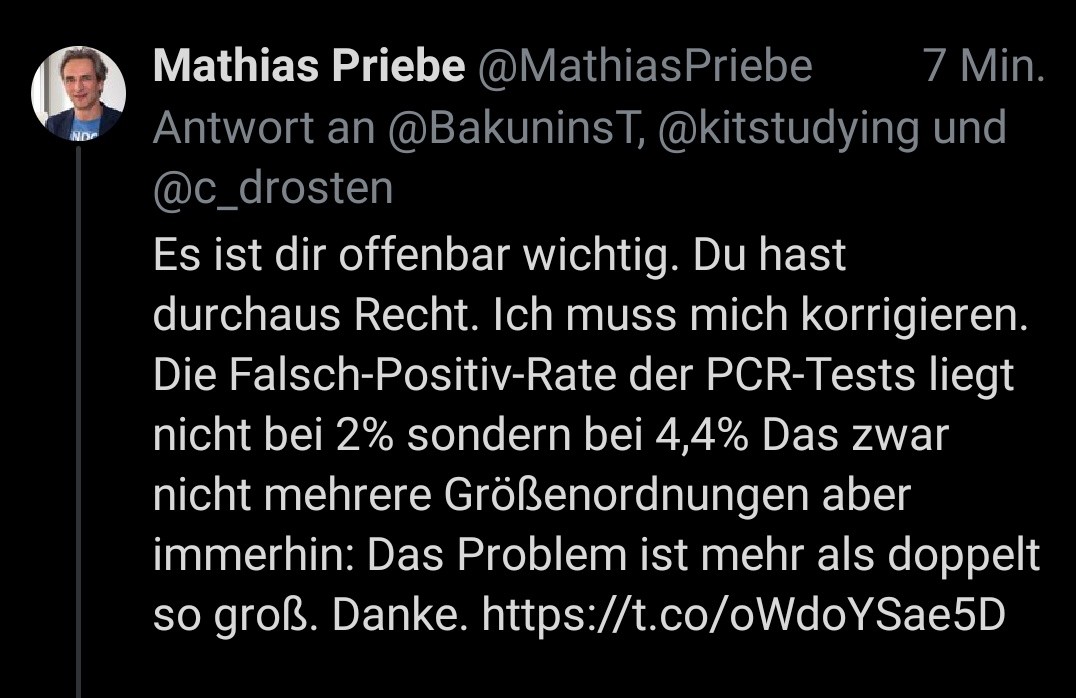 @MathiasPriebe @BakuninsT @c_drosten Hör doch einfach auf zu Twittern.. Entweder bin ich noch nicht ausgeschlafen genug oder du haust einen Unsinn nach dem nächsten raus. In deinem Link geht es um... ... Trommelwirbel... ANTIKÖRPERTESTS und dessen Falsch Positivrate wurde dann auch noch durch die PCR überprüf…