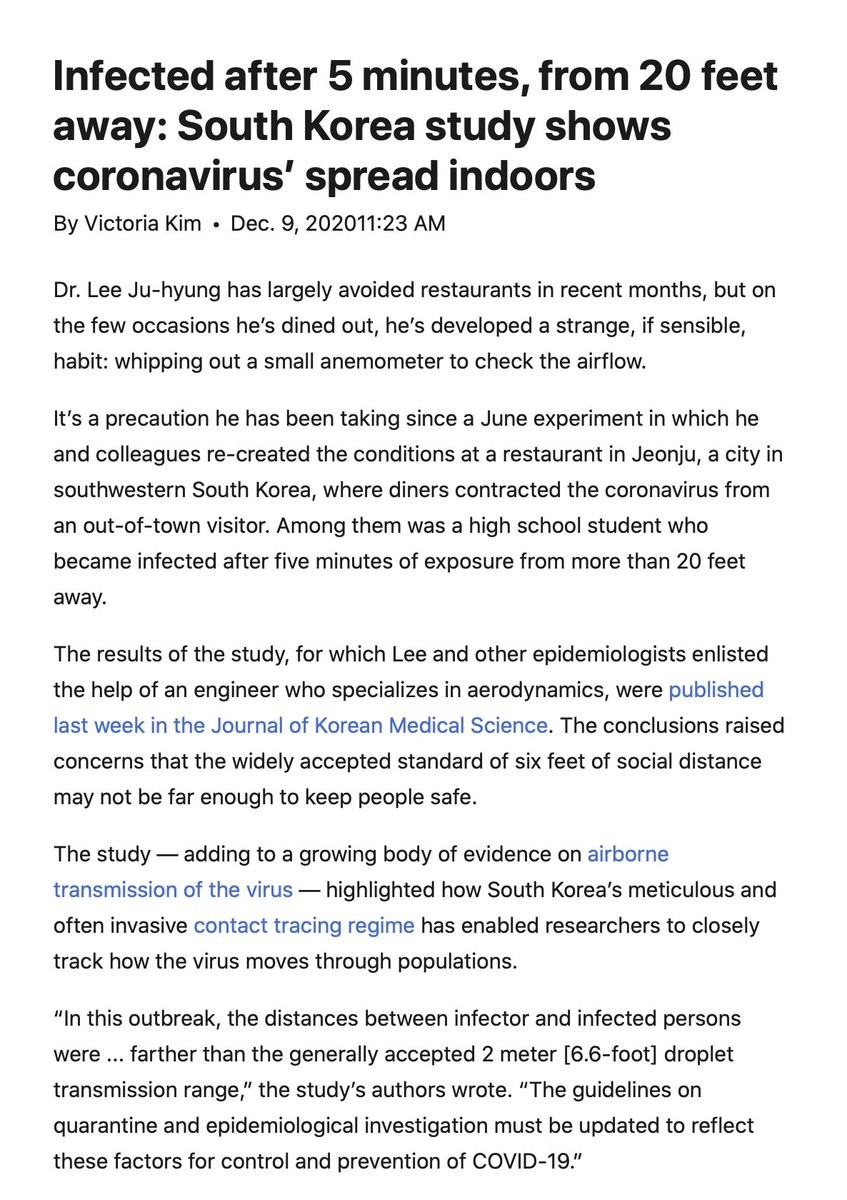 This recent S Korea study of covid infection from 5 min exposure, 21 feet away, is finally getting the media attention it deserves