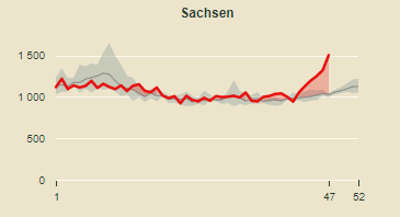 Nach aktuellen Angaben von DESTATIS gab es in Sachsen für die KW 47 (16.-22.11.2020) eine ausgeprägte Übersterblichkeit von 46 %.