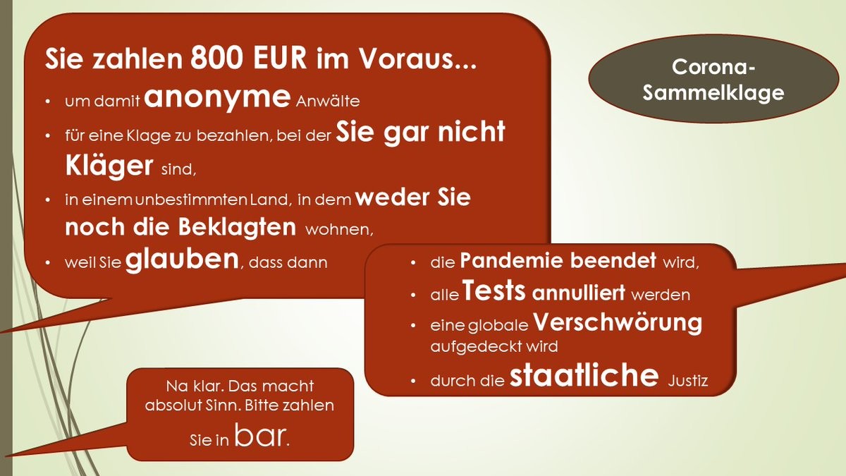 Der @Anwalt_Jun enttarnt die Quatsch-Klagedrohung von Pandemie-Leugner gegen @c_drosten als reine "PR-Aktion" ohne Aussicht auf Erfolg. Im Gegenteil: Wenn wollte, könnte es für die klagende Karaokebar sogar verdammt teuer werden volksverpetzer.de/video/fuellm