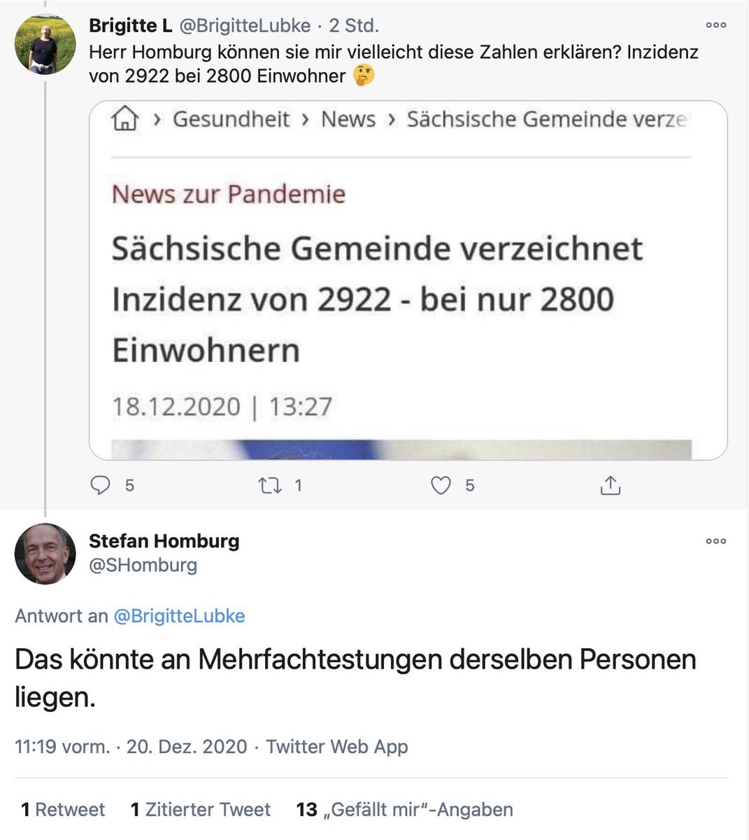 Ein Professor @SHomburg, der am einfachen Dreisatz scheitert, aber sich gleichzeitig als Pandemie-Experte geriert... 🤣😢🤢(Die Gemeinde hat in einer Woche 82 #Corona- Fälle.)