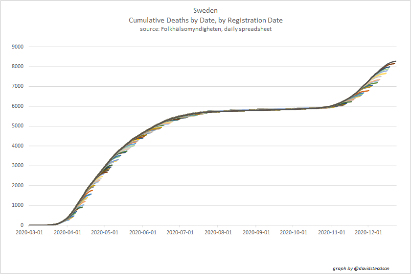 112 new #covid19sweden deaths reported today, taking the total to 8279. Oldest change +1 to Dec 4, largest +12 on Dec 16 and Dec 20. The slightly rising plateau continues to rise, as it did in the spring.