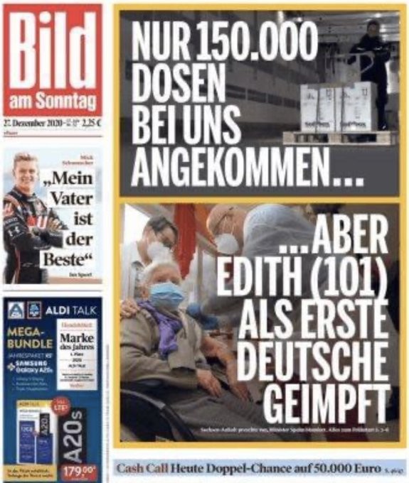 Bis vor kurzen warf die #Bild "einen" vor warum man nicht die Alten geschützt hätte, und heute wirft die Bild einen vor warum man eine 101 Jährige zuerst Impft. Hat denn Reichelt erwartet das man ihm die Spritze zuerst in den Hintern rammt?