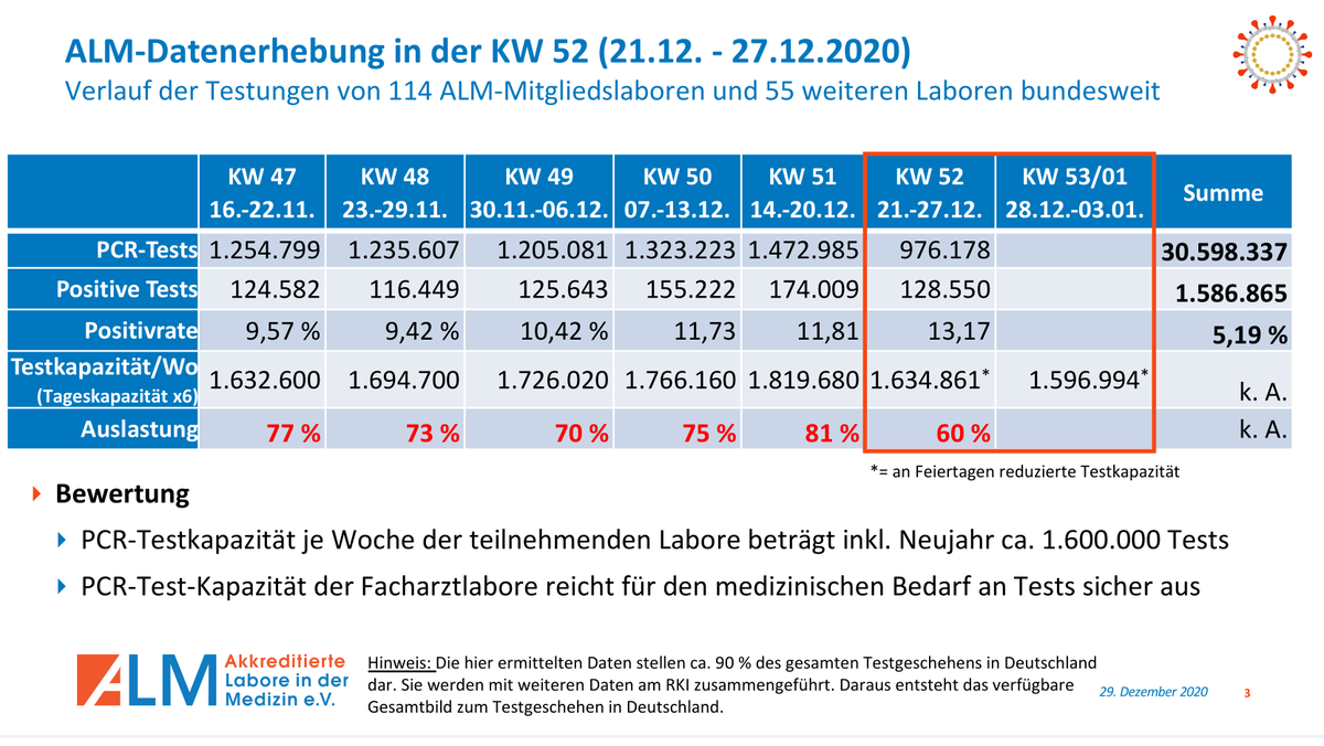 Wie erwartet: Die Zahl der Corona-PCR-Tests ist in den Laboren der @ALMevTeam in der letzten Woche feiertagsbedingt um ein Drittel gesunken. Bei der Zahl der positiven Tests beträgt der Rückgang nur etwa ein Viertel. Damit steigt die Positivquote weiter 13,2 %. [1/3]