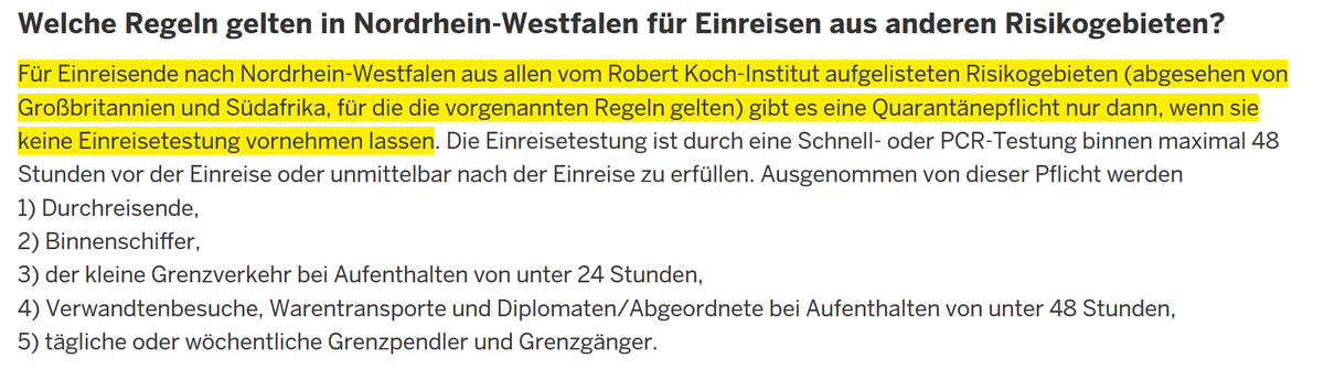 NRW ist aktuell das einzige Land in 🇩🇪, das bei Einreise aus den Risikogebieten auf die zwingende #Einreisequarantäne verzichtet.