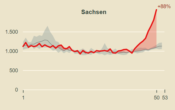 Besonders auffällige Entw. in Sachsen: 88% über dem Durchschnitt der Jahre 2016 bis 2019