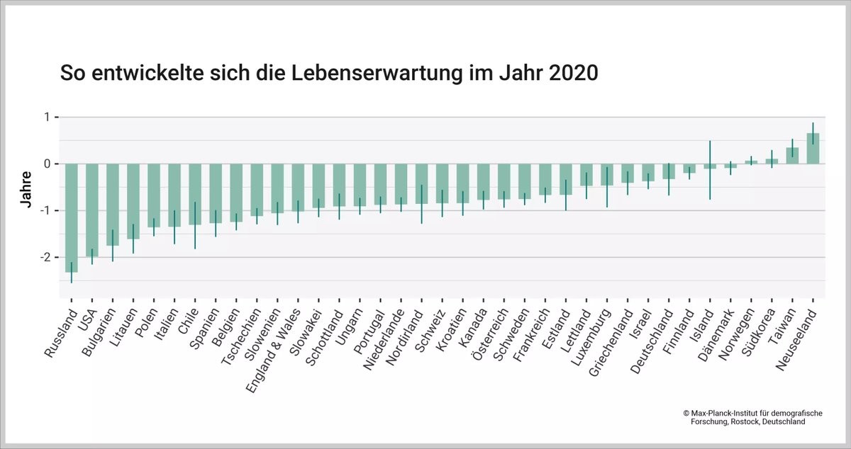 Kaum erstaunlich, dass Länder wie 🇳🇿 oder 🇳🇴 diesen Effekt kaum merken, im Gegenteil die Lebenserwartung weiter gestiegen ist.