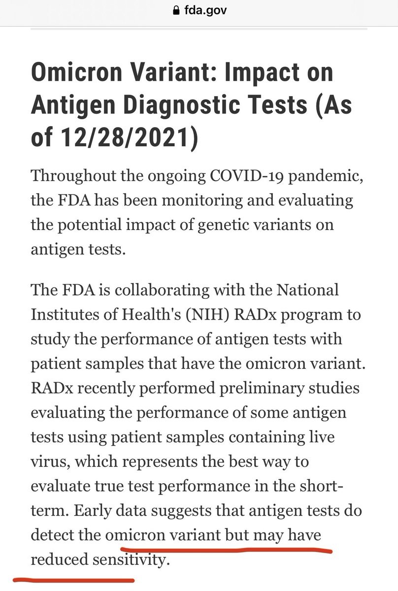 BREAKING—The FDA just announced that rapid antigen tests are less sensitive for detecting #Omicron variant infections. This could mean we are missing a lot more #COVID19. I know many families with everyone having symptoms but many not positive. Oy. https://www.fda.gov/medical-devices/coronavirus-covid-19-and-medical-devices/sars-cov-2-viral-mutations-impact-covid-19-tests