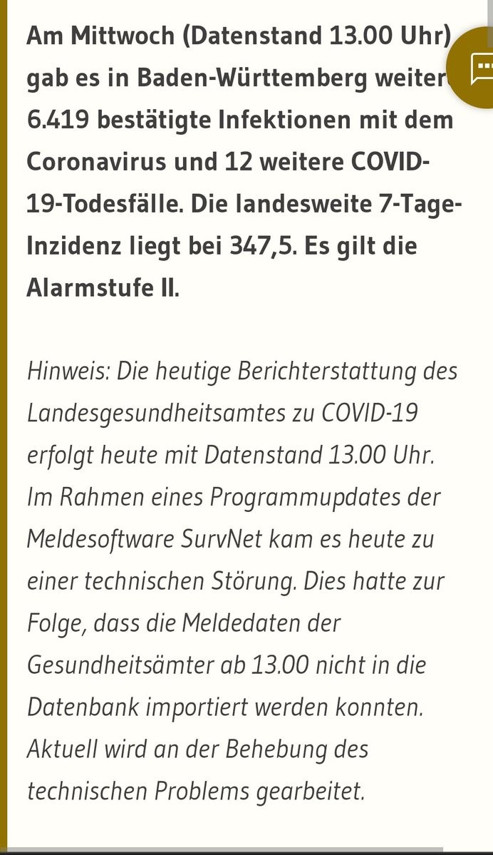Die Zahlen aus BaWü sind heute unvollständig. Sie wurden wegen einem technischen Problem nur bis 13 Uhr erfasst.